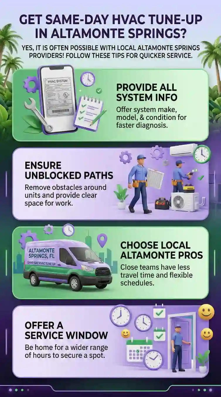 This page explains why securing a top HVAC system tune up near Altamonte Springs FL should be a priority, what same-day availability realistically looks like in this market, when it truly makes sense to pursue it, what to verify before booking any provider, and how to avoid the scheduling patterns that turn a $150 preventive visit into a $600 emergency repair call.